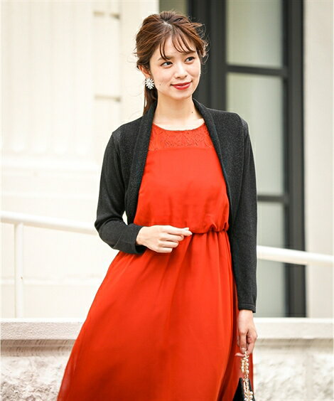 こだわりポイント上品でリッチなラメ入り素材、シンプルデザインで飽きのこないシルエットが魅力の長袖ボレロ♪