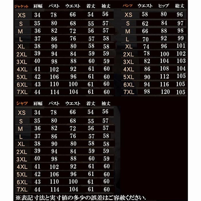 「記載のないアクセサリー・小物等は付属しません」 素材 ポリエステル カラー ブラック/ネイビー サイズ表(cm) 11SIZE XS/S/M/L/XL/2XL/3XL/4XL/5XL/6XL/7XL 【詳細サイズは写真をご参考下さい。
