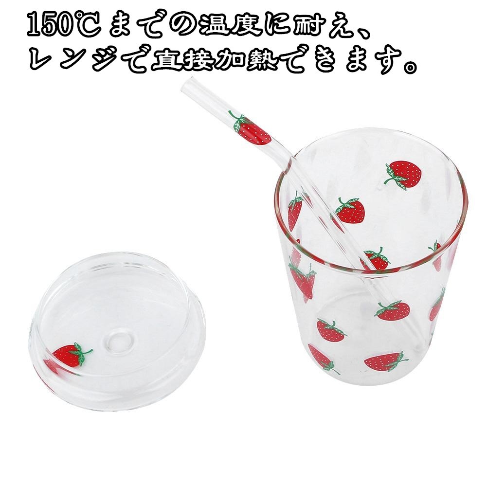 送料無料 300ml グラスカップ ストローリッドと蓋付き 飲みやすい 耐熱 150℃まで レンジで直接加熱可能 透明 イチゴ 可愛い ティーカップ コーヒーマグ コーヒーカップ ビールマグ ビールカップ ミルクマグカップ ジュースカップ 飲料カップ 【在庫がある場合】5日以内に中国から発送、18日以内でお届けします。